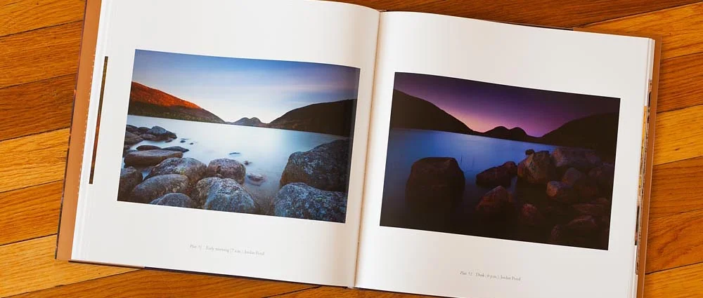 My ultimate goal in creating the book was to produce the most beautiful book of Acadia photographs that has ever been published– I'll leave it to readers to decide for themselves if I succeeded– but that's what I was striving for. Already the book has been described as "museum quality", "terrific presentation", "outstanding" and "absolutely beautiful" by readers. I wanted it to have the look and feel of a high quality fine art book by making it big (12x12 inches), using heavy (180gsm) fine art paper, and contracting with an experienced printer to do the offset printing (the book wasn't printed using an online book printer, but on an actual printing press). It's been very time consuming but also enjoyable to go through the process of self-publishing– to be able to control the whole process from start to finish, and end up with the quality book I really wanted.
