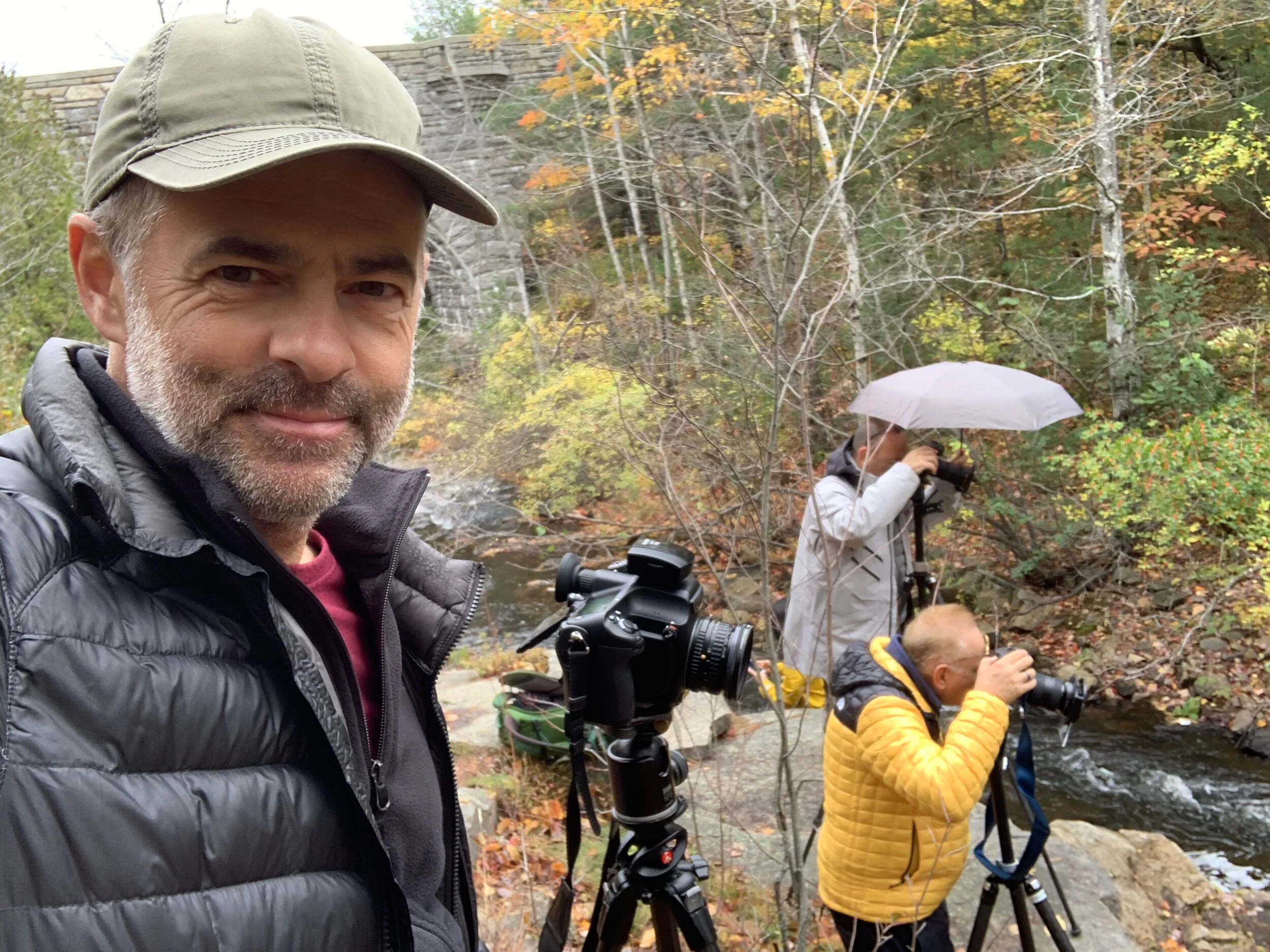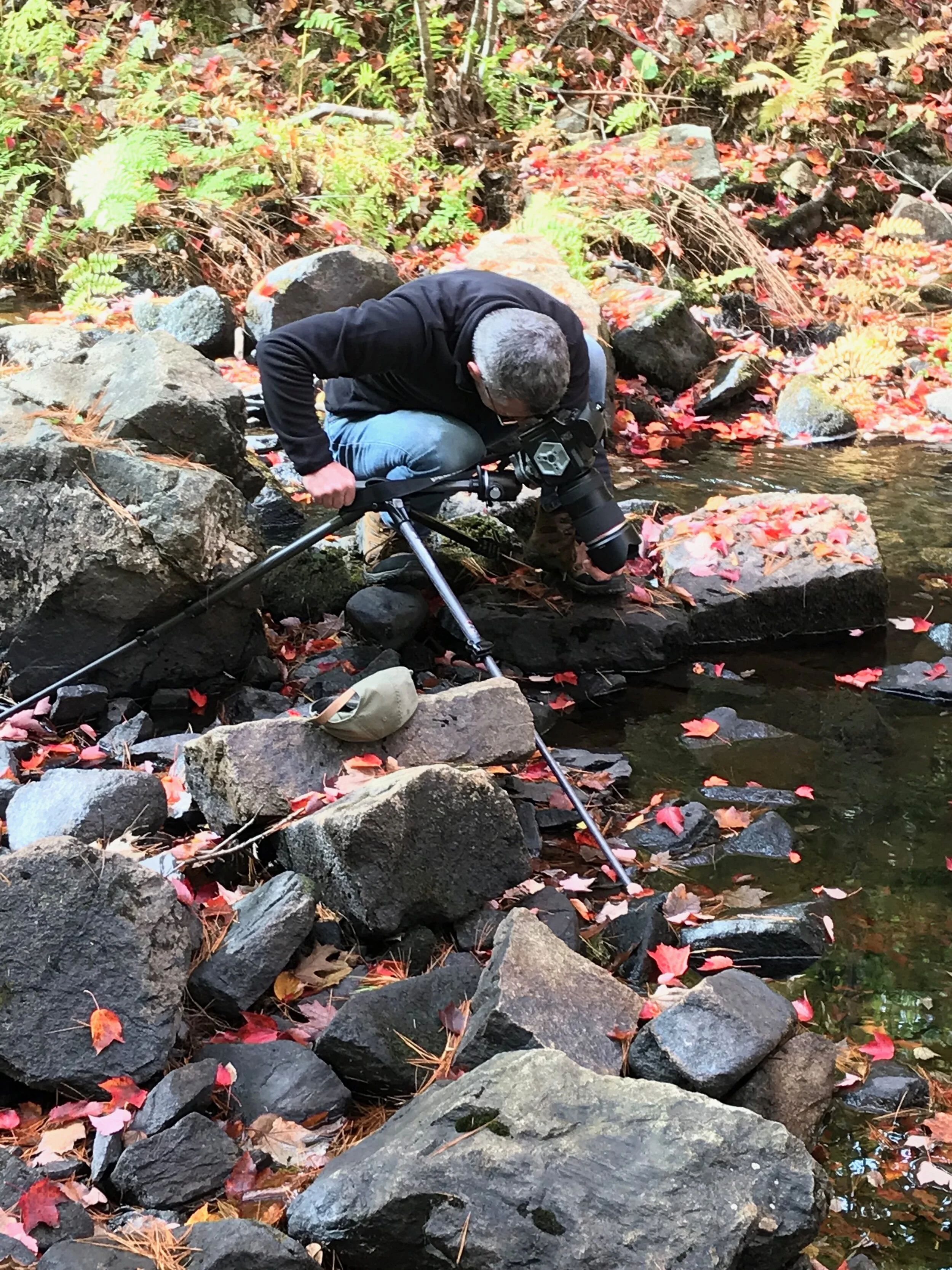 We only had two slight mishaps over the two week period, and they both involved one of our favorite places– Duck Brook. One photographer slipped and broke a graduated filter on the rocks along the brook. Then another knocked his filter holder off the front of his lens into the water, losing a polarizer, graduated neutral density filter and neutral density filter– over $300 of gear– in the fast-flowing stream (a Nor’Easter had just hit the area that morning, dumping heavy rains in the area). As much as we tried, we couldn’t find them and had to give up the search after a few minutes. Two days later, we were back in the area and, with water levels lower, I thought we’d try searching for the filters one more time. After only a couple minutes, Tomas reached his hand into the stream and pulled out the holder with all filters intact, with only some slight scratches on one of them. It was a great triumph, and we were glad B&H had been closed a couple days earlier, or he would’ve spent a lot of money overnighting all new filters to the hotel.