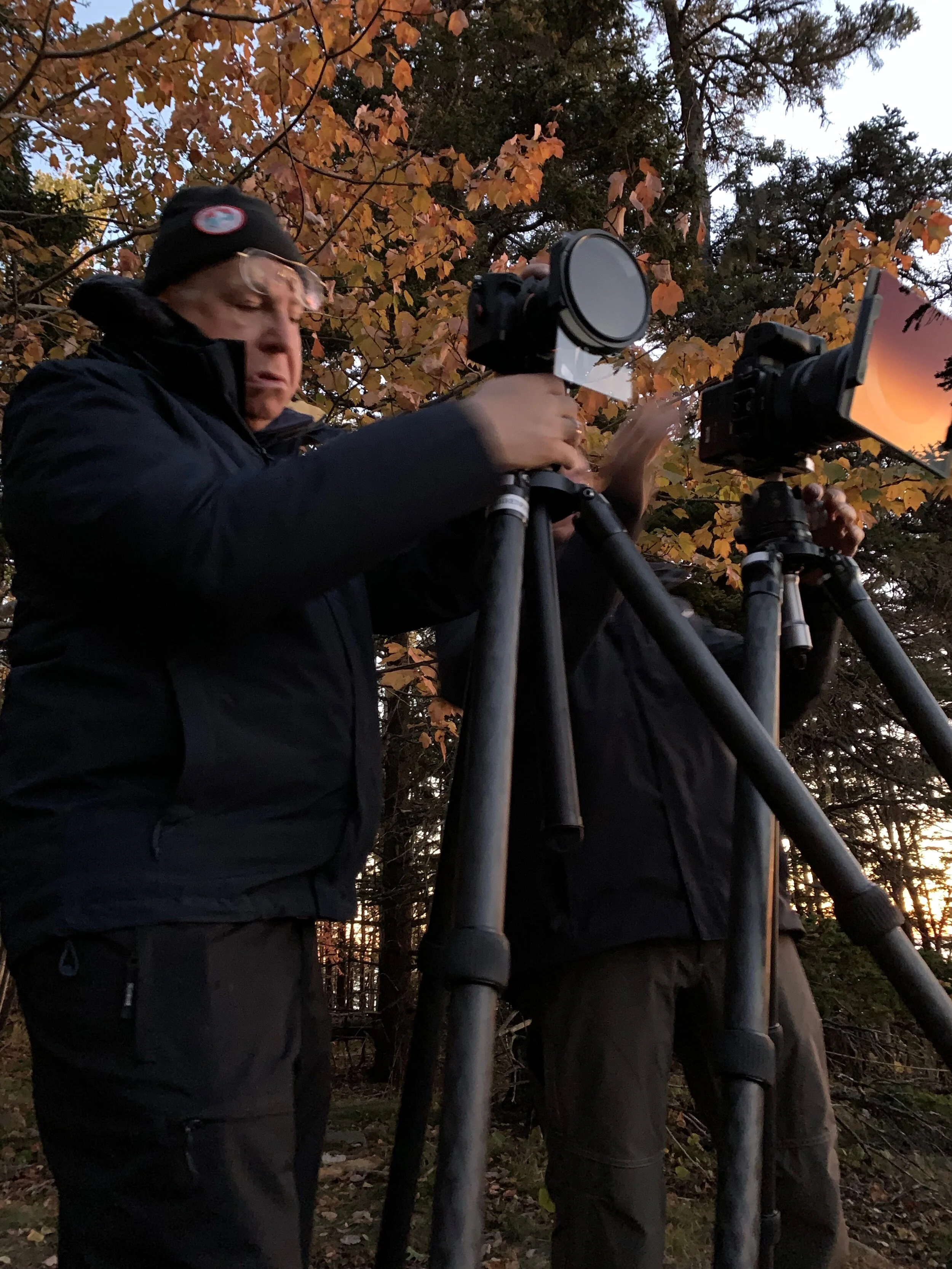 Tomas and Flavio work the best angle for a dramatic image of Bass Harbor lighthouse.