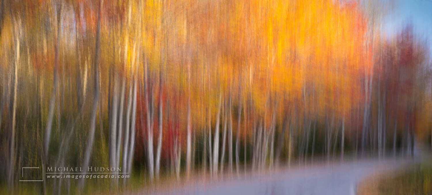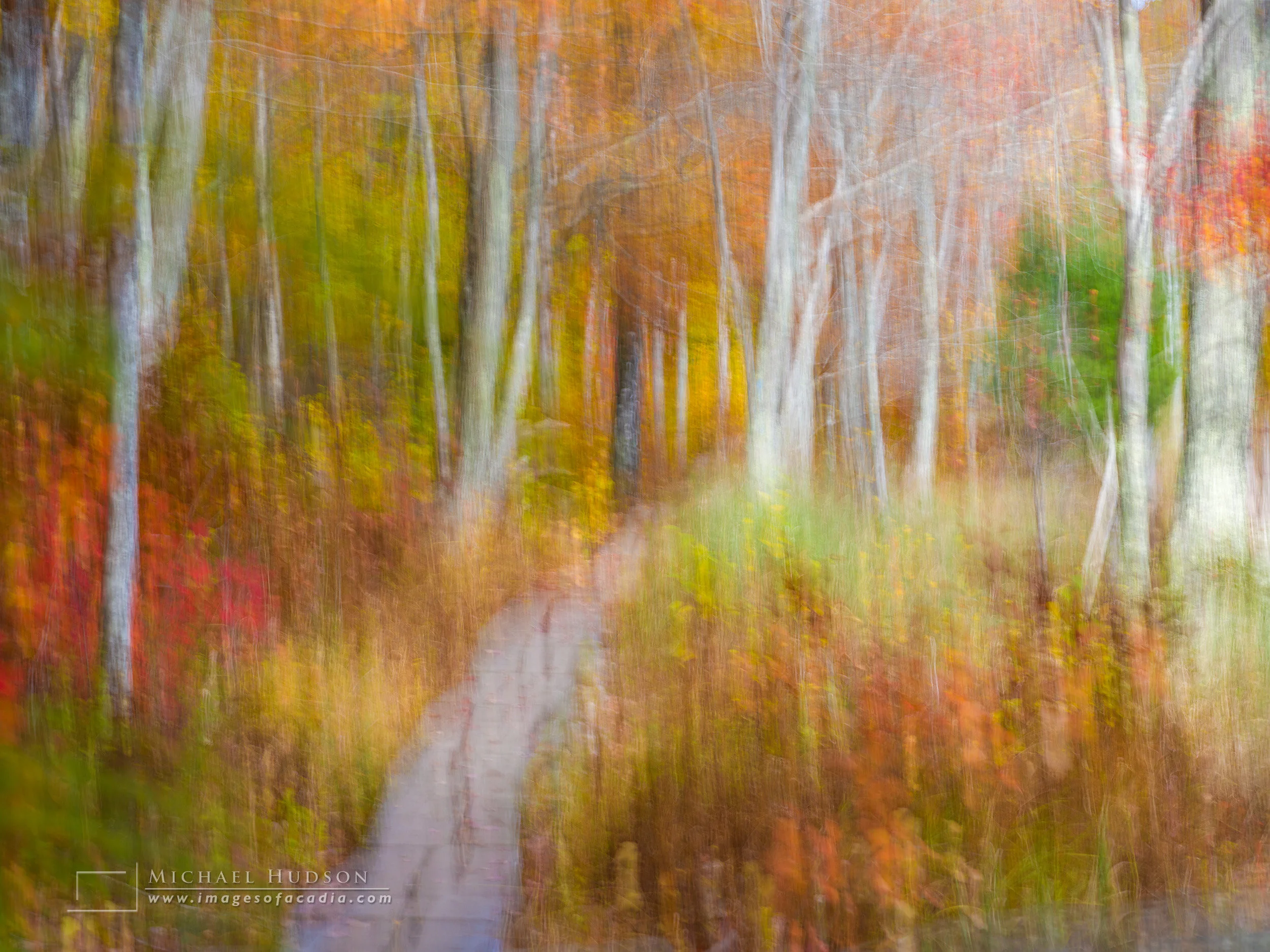 On my most recent trip, last Autumn, I experimented with camera movement to create a unique look to my landscape images. Normally I use a tripod, locked down for maximum sharpness, along with lenses that are renowned for their sharpness and ability to resolve the finest details. But in these new images, I wanted to photograph what the landscape feels like, instead of just what it looks like. By creating more Impressionistic pieces, the viewer only sees a big picture- a swath of color, some shapes or suggestions of trees, paths or boulders. The details are lost or obscured leaving a simplified, stripped back landscape.